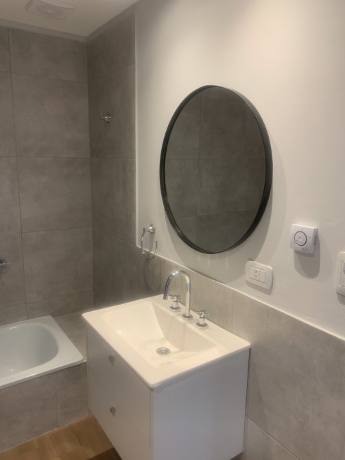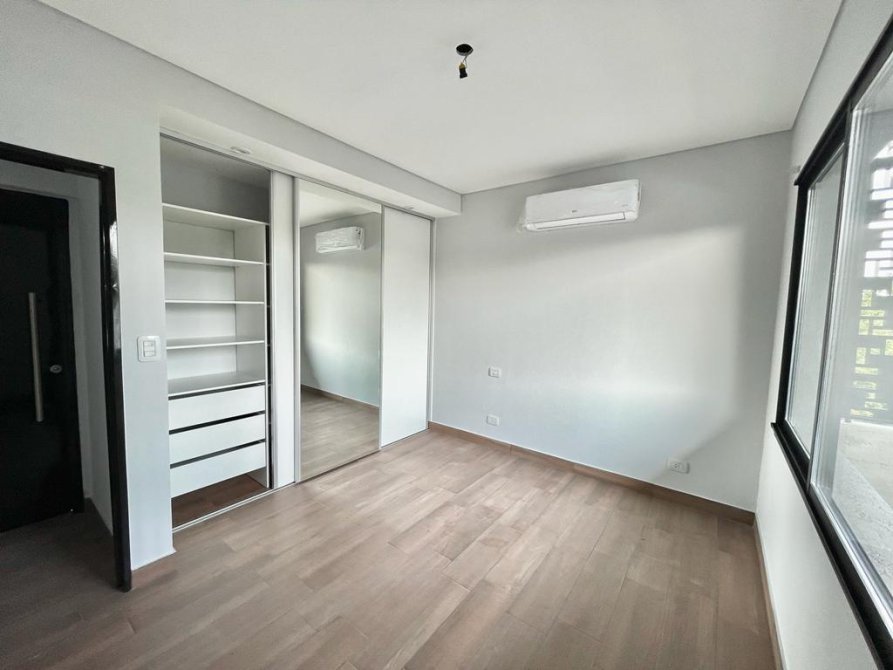 Cuenta con un amplio living con balcón corrido, cocina equipada con muebles sobre y bajo mesada, dormitorio con placard empotrado y espejo, aire acondicionado en todos los ambientes y baño completo con piso eléctrico radiante. Además, posee cortinas roller black out, instalación para TV e internet y cochera semi cubierta.
