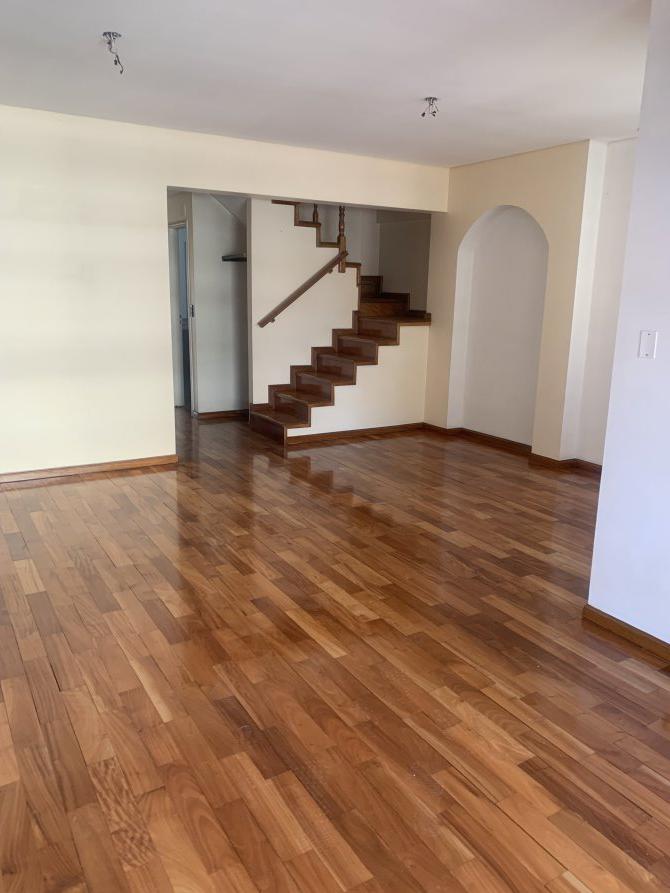 Semipiso al frente en duplex en Las Lomitas,con cochera doble lineal Desarrollado en dos plantas,en el piso 9 amplio living con balcon al frente todo en piso de madera recien plastificado,cocina comedor diario con balcon y lavadero,toilette de recepcion,en la planta superior que se accede por el living dormitorio principal en suitte con ventanas hacia el norte y dos dormitorio al frente sobre calle Colombres ambos con placard.Todo los pisos estan recien plastificados.