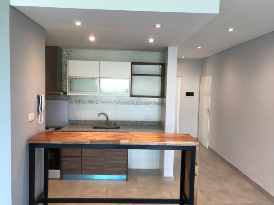 Amplio living comedor muy luminoso con aire acondicionado, dormitorio con placard y aire acondicionado,cocina completa con muebles sobre y bajo mesada y barra desayunadora en hierro y madera,moderna cocina eléctrica,extractor de acero inoxidable,baño completo,pisos de porcelanato ,calefaccion por piso radiante,griferia Aqualaf,Cochera cubierta,amplia baulera.