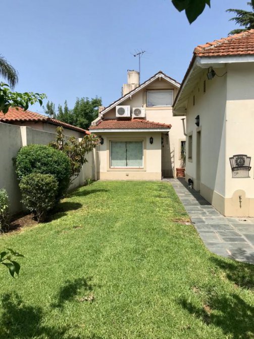 Importante chalet desarrollado sobre un lote de 10 x 40 aprox,hall de recepcion ,living con pisos de parquet y puerta doble con vidrios repartidos,toilette de recepción,amplia cocina comedor con ventanales al jardín,un espacio para vivirlo,muy luminoso,dormitorio principal en suite con vestidor en planta baja,en la planta alta tres dormitorios con baño completo y espacio para escritorio,en el jardin un quincho cerrado con parrilla,lavadero con habitacion y baño de servicio,pileta de fibra,garaje pasante cubierto. Calefacción central,aacc split. Detalles de categoría .Escucha propuesta razonable